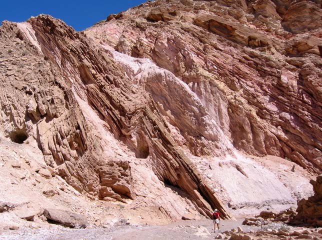perpendicular. Notice the twists in the rock layers that are visible in this