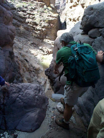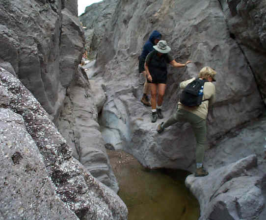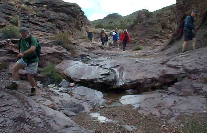 We were "lucky" enough to be hiking after one of the area's infrequent rainfalls, and the resulting water problems (falling in quicksand or sitting in slime!) made our trip all the more interesting.